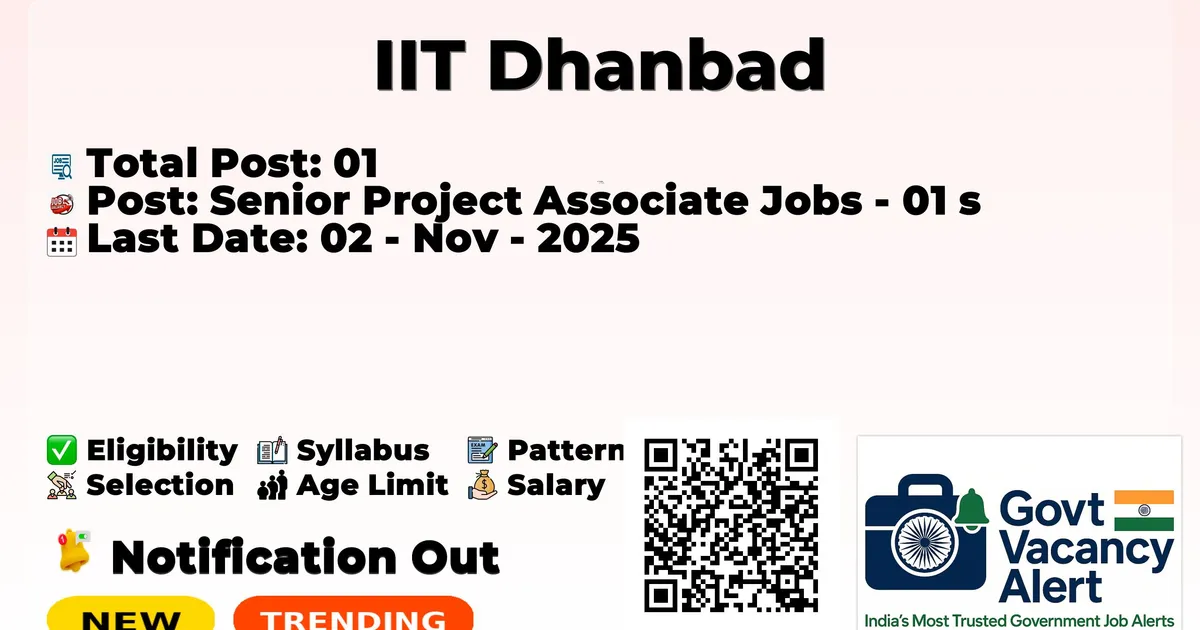 IIT Dhanbad — Senior Project Associate Jobs - 01 Posts
