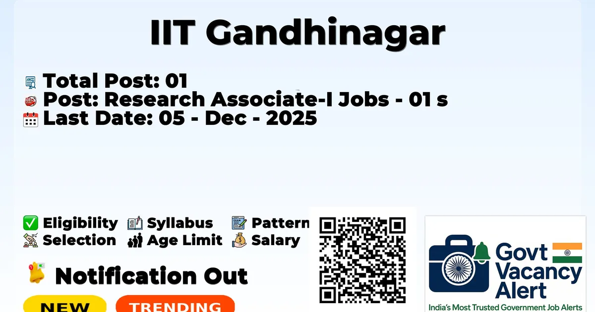 The Indian Institute of Technology Gandhinagar (IIT Gandhinagar) has officially released the notification to fill the vacancies of Research Associate-I Posts. Interested and eligibile candidates can use this opportunity to apply for these posts before the last date of application. Candidates who have completed their M.Sc., M.E./M. Tech in Electronics, Electrical Engineering, and Ph.D. can apply for the IIT Gandhinagar Jobs 2025. The interested applicants can apply in online mode. Here we have mentioned the education details, age limit, selection process, application fee, salary, and how to apply for these posts before the deadline. The application dates have already begun.