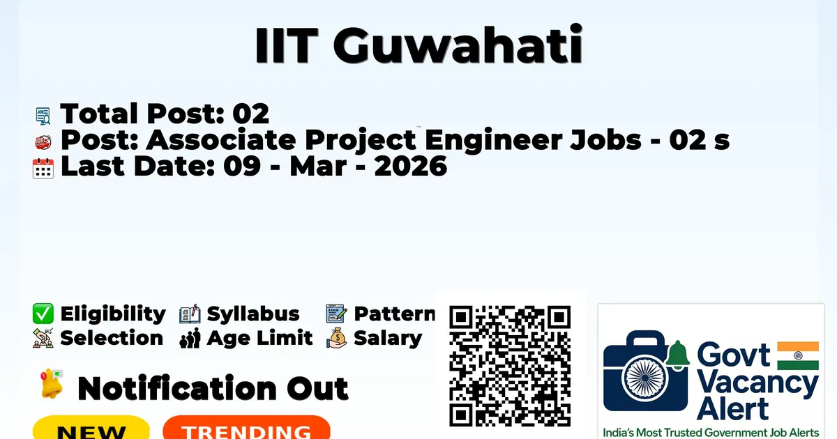 The Indian Institute of Technology Guwahati (IIT Guwahati) has officially released the notification to fill the vacancies of 02 Associate Project Engineer Posts. Interested and eligibile candidates can use this opportunity to apply for these posts before the last date of application. Candidates who have completed their B.E./B. Tech, M.E./M. Tech can apply for the IIT Guwahati Jobs 2026. The interested applicants can apply in online mode. Here we have mentioned the education details, age limit, selection process, application fee, salary, and how to apply for these posts before the deadline. The application dates have already begun.