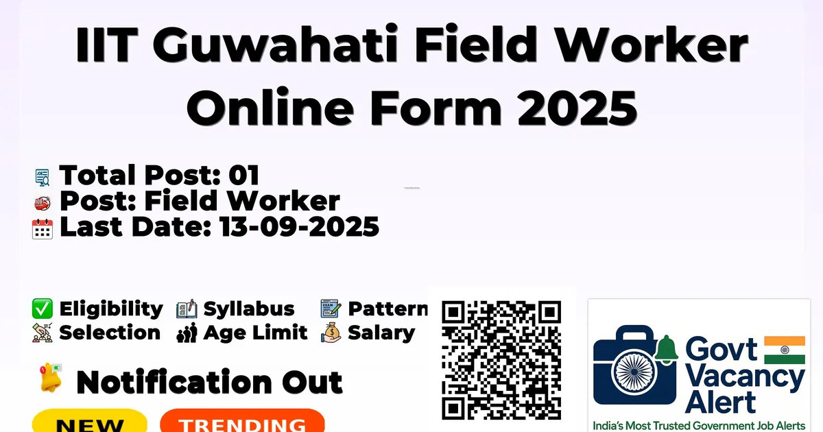 The Indian Institute of Technology Guwahati (IIT Guwahati) Recruitment 2025 for 01 posts of Field Worker. Candidates with B.A, B.Sc Can Apply Online. The online application closes on 13-09-2025. The candidate shall apply online through IIT Guwahati website, iitg.ac.in.