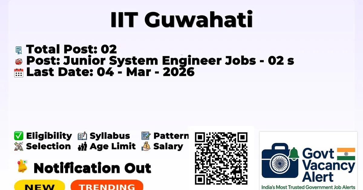 The Indian Institute of Technology Guwahati (IIT Guwahati) has officially released the notification to fill the vacancies of 02 Junior System Engineer Posts. Interested and eligibile candidates can use this opportunity to apply for these posts before the last date of application. Candidates who have completed their B.E./B. Tech, MCA can apply for the IIT Guwahati Jobs 2026. The interested applicants can apply in online mode. Here we have mentioned the education details, age limit, selection process, application fee, salary, and how to apply for these posts before the deadline. The application dates have already begun.