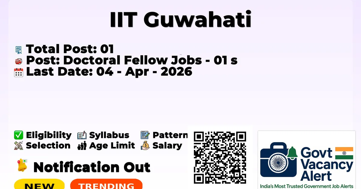 Indian Institute of Technology (IIT) Guwahati has declared the official notification for 2026. To fill up the vacancies for Post-Doctoral Fellow Jobs. Those candidates who have qualified in the M.E/ M.Tech, M.Sc, and MCA can grab this chance and apply for the IIT Guwahati Notification 2026. Here we included the age limit, selection process, salarystructure, education details, application fee, and how to apply for these posts.