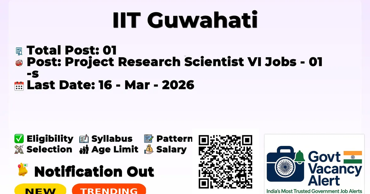 The Indian Institute of Technology Guwahati (IIT Guwahati) has officially released the notification to fill the vacancies of 01 Project Research Scientist VI Posts. Interested and eligible candidates can use this opportunity to apply for these posts before the last date of application. Candidates who have completed their B.E./B. Tech in Mechanical Engineering can apply for the IIT Guwahati Jobs 2026. The interested applicants can apply in online mode. Here we have mentioned the education details, age limit, selection process, application fee, salary, and how to apply for these posts before the deadline. The application dates have already begun.