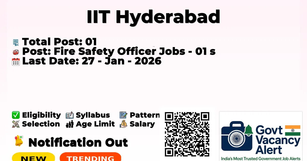 The Indian Institute of Technology Hyderabad (IIT Hyderabad) has officially released the notification to fill the vacancies of 01 Fire Safety Officer Posts. Interested and eligibile candidates can use this opportunity to apply for these posts before the last date of application. Candidates who have completed their B.E./B. Tech, B.Sc., 12th can apply for the IIT Hyderabad Jobs 2026. The interested applicants can attend the walk-in interview. Here we have mentioned the education details, age limit, selection process, application fee, salary, and how to apply for these posts before the deadline. The application dates have already begun.