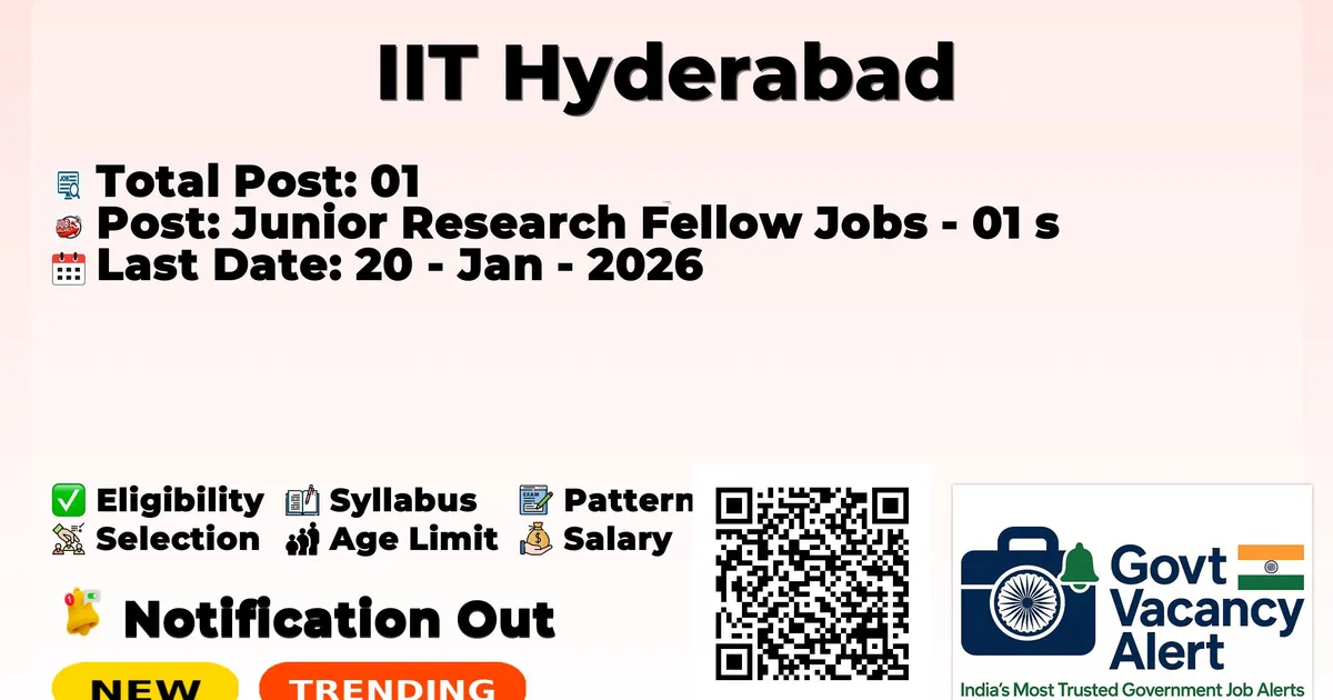IIT Hyderabad — Junior Research Fellow Jobs - 01 Posts