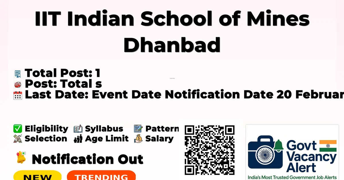 IIT Indian School of Mines Dhanbad (IIT ISM Dhanbad) has officially released a notification for the recruitment of 1 Field Investigator Posts. This recruitment drive offers a great opportunity for candidates looking for government jobs. Interested and eligible candidates can apply online through the official website.The last date to apply online is 10-03-2026, so applicants are advised to submit their forms well before the deadline to avoid last-minute issues. Advertisement Company Name IIT Indian School of Mines Dhanbad Post Name Field Investigator No of Posts 1 Salary Rs. ₹20,000 Per Month Qualification M.A Age Limit Max: 30 years Last Date 10-03-2026 Apply Mode Online Job Type Contract Trending Govt Jobs RRB 22000 Group D Online form 2026 IAF Agniveer New Recruitment 2026 DSSSB 911 AE, JE & More Online Form 2026 MCL 677 Various Vacancies Online Form 2026 MMRDA 235 AE, JE and More Posts Online Form 2026 Candidates who are interested in applying for the IIT ISM Dhanbad Recruitment 2026 should first download and carefully read the official notification PDF. The notification contains complete details about vacancy distribution, eligibility criteria, age limit, stipend/salary, selection process, important dates, and application instructions. Reading the official document is important to ensure that you meet all requirements before submitting the application form. Download IIT ISM Dhanbad Field Investigator Job 2026 Notification PDF Post Name Total Posts Field Investigator 1 Total 1 Post-Graduate in any Social Science discipline with minimum 55% Marks Maximum Age Limit: 30 years Rs. ₹20,000 Per Month Event Date Notification Date 20 February 2026 Last Date 10 March 2026 Shortlisting Interview Applications must be submitted online on or before 10-03-2026. To apply directly, use the Apply Online link provided in the Important Links section. Alternatively, candidates may visit the official website of IIT ISM Dhanbad to complete the application. Fill out the application form carefully with correct personal, educational, and contact details. Upload required documents such as photograph, signature, and certificates in the prescribed format. Pay the application fee online, if applicable. Review all details carefully before submitting the form. Take a printout or save a copy of the submitted application for future reference. Link Description Link Apply Link Click here Official Notification PDF Click here Official Website Click here