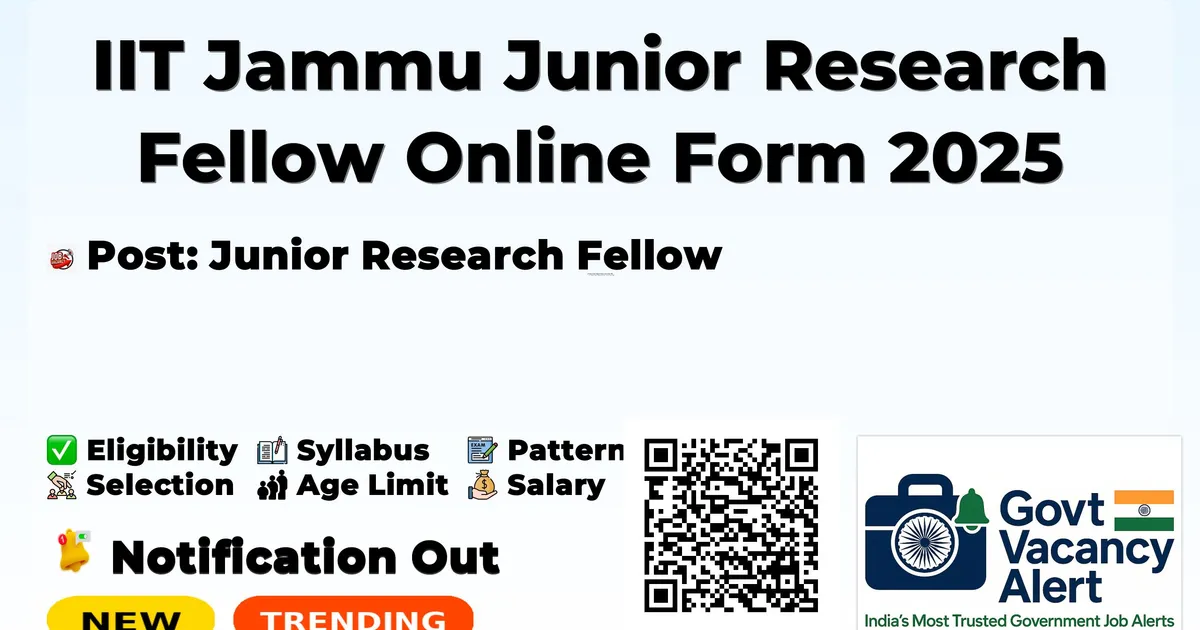 IIT Jammu Junior Research Fellow Online Form 2025 — Junior Research Fellow