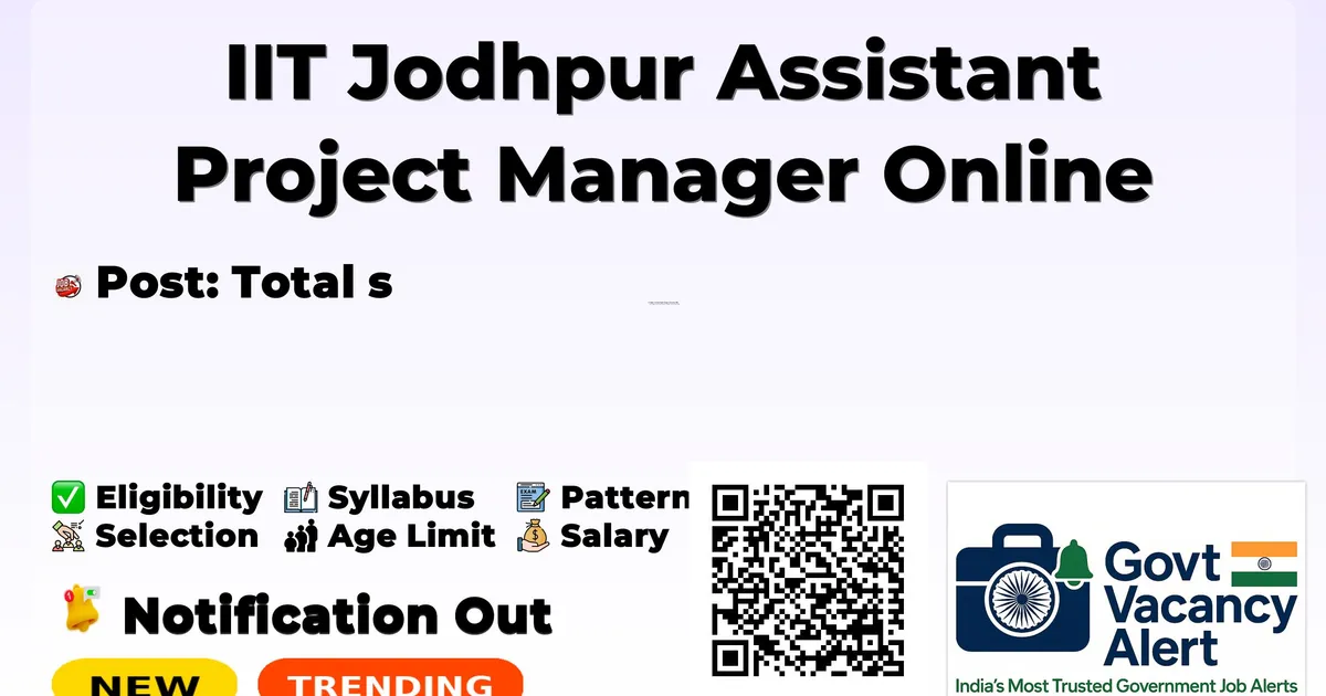 Indian Institute of Technology Jodhpur (IIT Jodhpur) has released an official notification for the recruitment of 02 Assistant Project Manager Posts. Interested and eligible candidates can apply Online through the official IIT Jodhpur website. The last date to submit the application form is 17-12-2025. In this article, you’ll find the IIT Jodhpur Assistant Project Manager Posts recruitment details, including eligibility criteria, age limit, salary structure, selection process, application steps, and direct links to the official notification and Online application form.