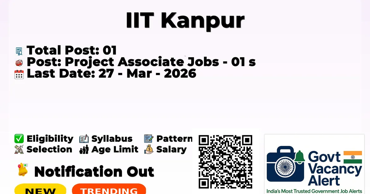 Indian Institute of Technology Kanpur (IIT Kanpur) has declared the official notification for the recruitment of Project Associate Jobs. Those candidates who have qualified in the B.E/ B.Tech, M.Sc can grab this chance and apply for the IIT Kanpur Recruitment 2026. Here we included the age limit, selection process, and salary structure, education details, application fee, and how to apply for these posts.
