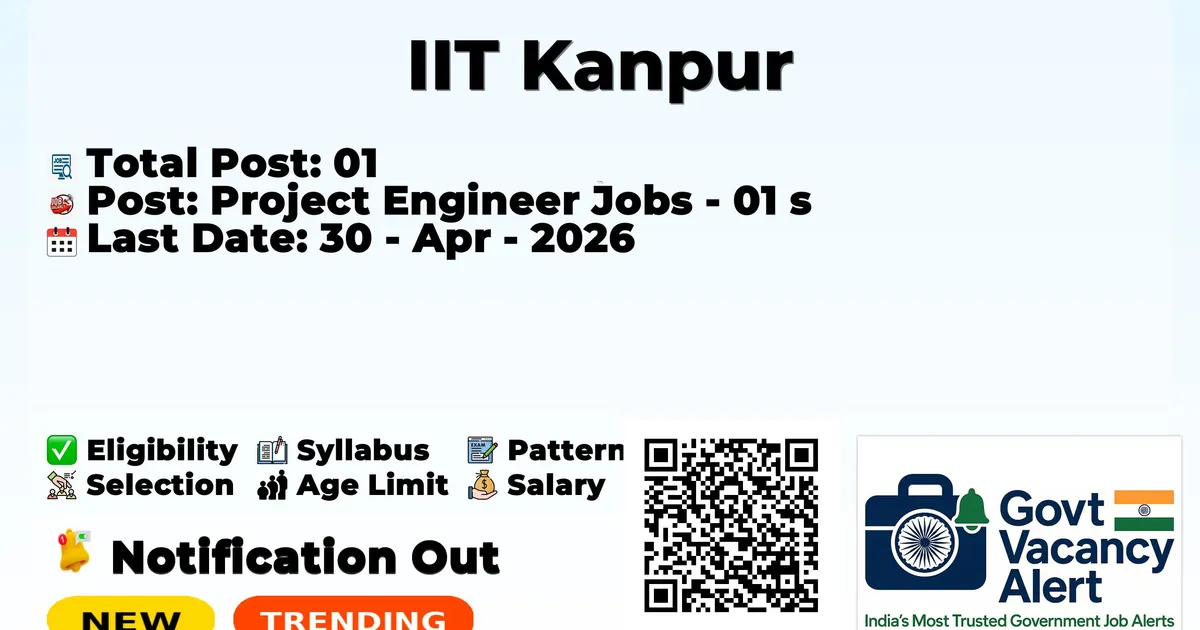 The Indian Institute of Technology Kanpur has released the official notification for 2026. To fill up the vacancies for various Project Engineer Jobs. Those candidates who have qualified in the B.E/ B.Tech, M.E/ M.Tech in Electrical Engineering can grab this chance and apply for the IIT Kanpur Recruitment 2026. Here, we included the age limit, selection process, salary structure, education details, application fee, and how to apply for these posts.