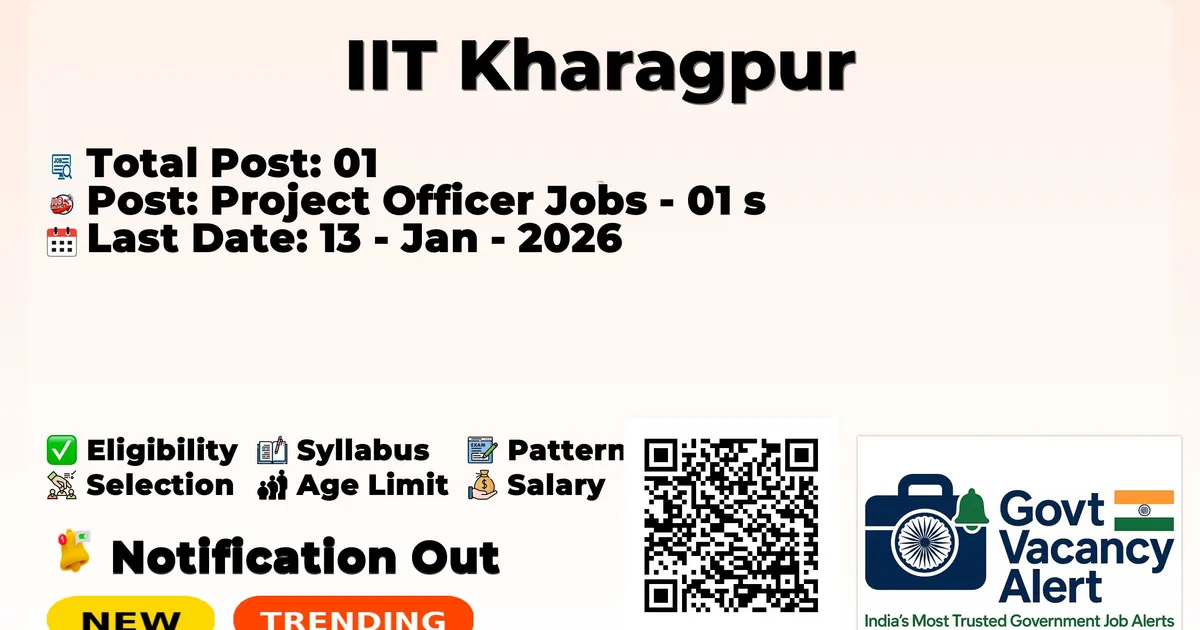 Indian Institute of Technology Kharagpur (IIT Kharagpur) has declared the official notification for 2026. To fill up the vacancies for Project Officer Jobs. Those candidates who have qualified in the M.E/ M.Tech in Civil Engineering can grab this chance and apply for the IIT Kharagpur Recruitment 2026. Here, we included the age limit, selection process, salary structure, education details, application fee, and how to apply for these posts. Interested candidates can apply online before the application ends.