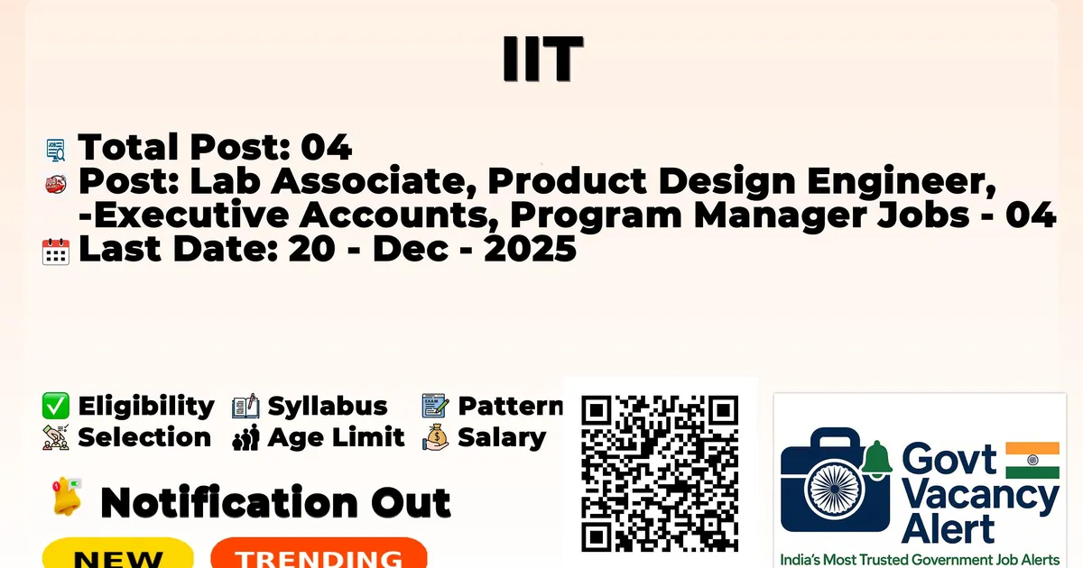 IIT — Lab Associate, Product Design Engineer, Executive Accounts, Program Manager Jobs - 04 Posts