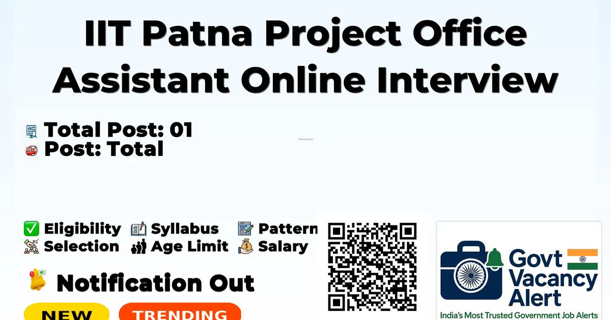 Advertisement Indian Institute of Technology Patna (IIT Patna) Recruitment 2025 for 01 posts of Project Office Assistant. Candidates with B.Com Can attend the walkin. The Online Interview on 29-10-2025. For detailed information please visit IIT Patna official website, iitp.ac.in.