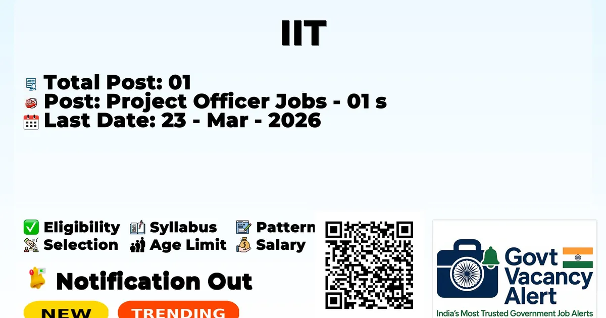 Indian Institute of Technology Madras (IIT Madras) has officially released a notification for Project Officer Jobs. Candidates who have qualified in the M.E/ M.Tech in Mechanical Engineering or Chemical Engineering can grab this chance and apply for the IIT Madras Recruitment 2026. Here we include the age limit, selection process, salary structure, education details, application fee, and how to apply for these posts.