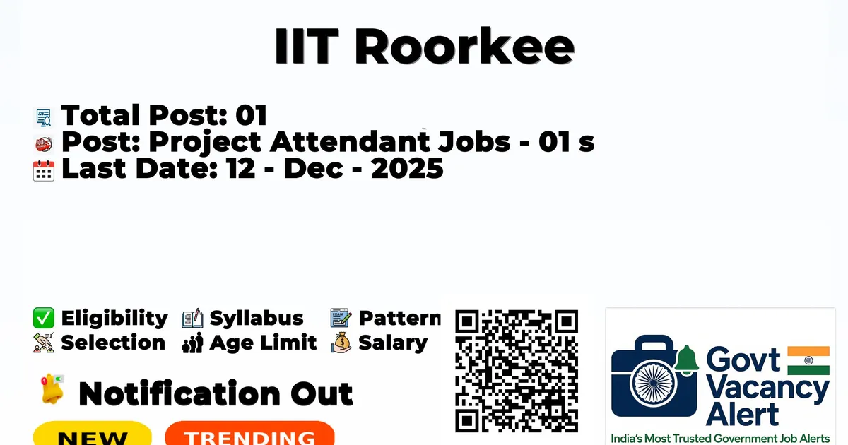 Indian Institute of Technology Roorkee (IIT Roorkee) has declared the official notification for 2025. To fill up the vacancies for Project Attendant Jobs. Those candidates who have qualified in the 10th Pass can grab this chance and apply for the IIT Roorkee Recruitment 2025. Here, we include the age limit, selection process, salary structure, education details, application fee, and how to apply for these posts. Interested and eligible candidates can attend the walk-in at the address given below.
