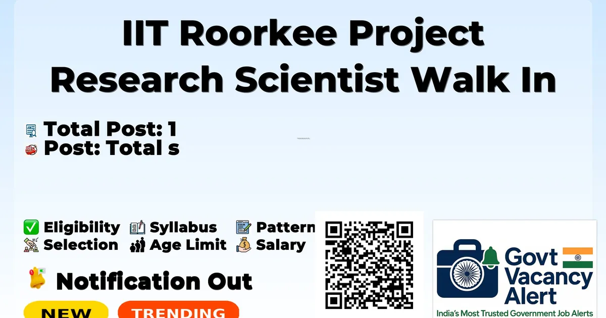 IIT Roorkee Project Research Scientist Walk In 2026 — Total Posts