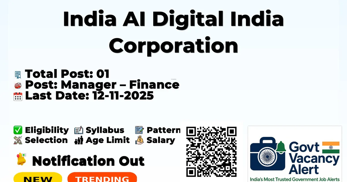 India AI Digital India Corporation has released an official notification for the recruitment of 01 Manager Posts. Interested and eligible candidates can apply Online through the official India AI Digital India Corporation website. The last date to submit the application form is 12-11-2025. In this article, you’ll find the India AI Digital India Corporation Manager Posts recruitment details, including eligibility criteria, age limit, salary structure, selection process, application steps, and direct links to the official notification and Online application form.