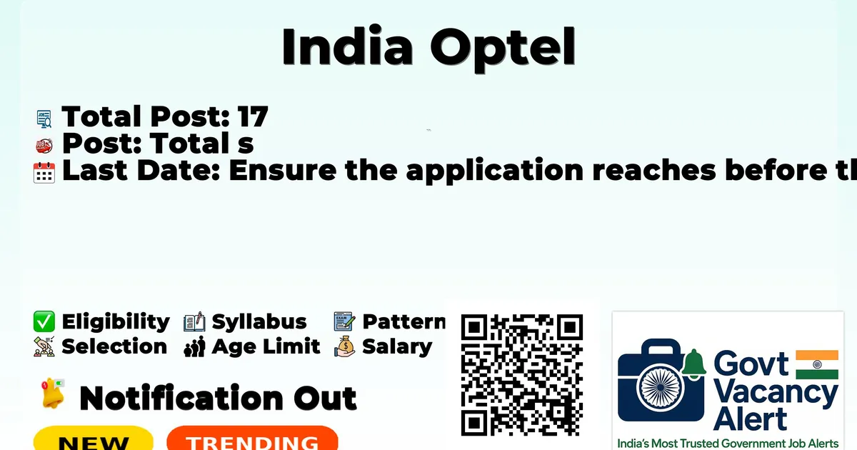 India Optel Recruitment 2026: India Optel has released the official notification for 17 Consultant, Assistant Company Secretary and More inviting applications from eligible candidates. This recruitment provides an excellent opportunity for candidates seeking stable and well-paid government jobs.