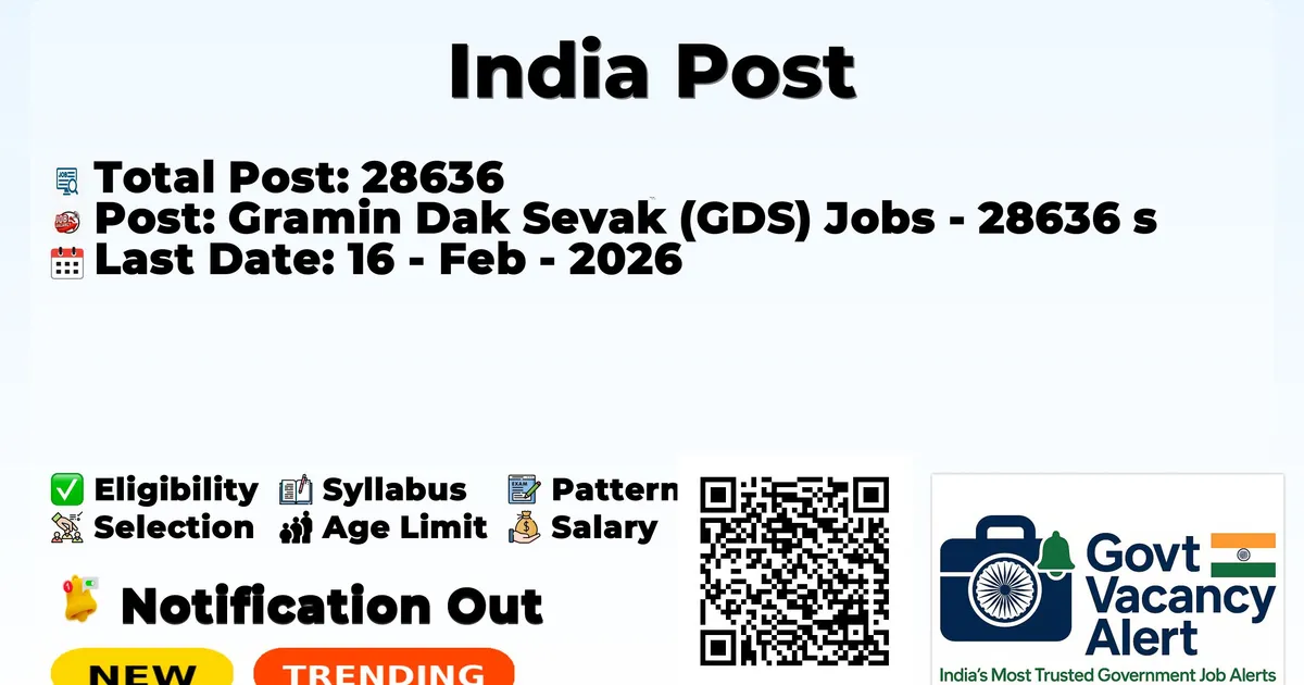India Post Office has released an official notification for the recruitment of Gramin Dak Sevak (GDS) Posts. Those candidates who have qualified in the 10th Pass can grab this chance and apply for the India Post Notification 2026. Here we include the age limit, selection process, salary structure, education details, application fee, and how to apply for these posts. Interested candidates can apply before the last date of application.