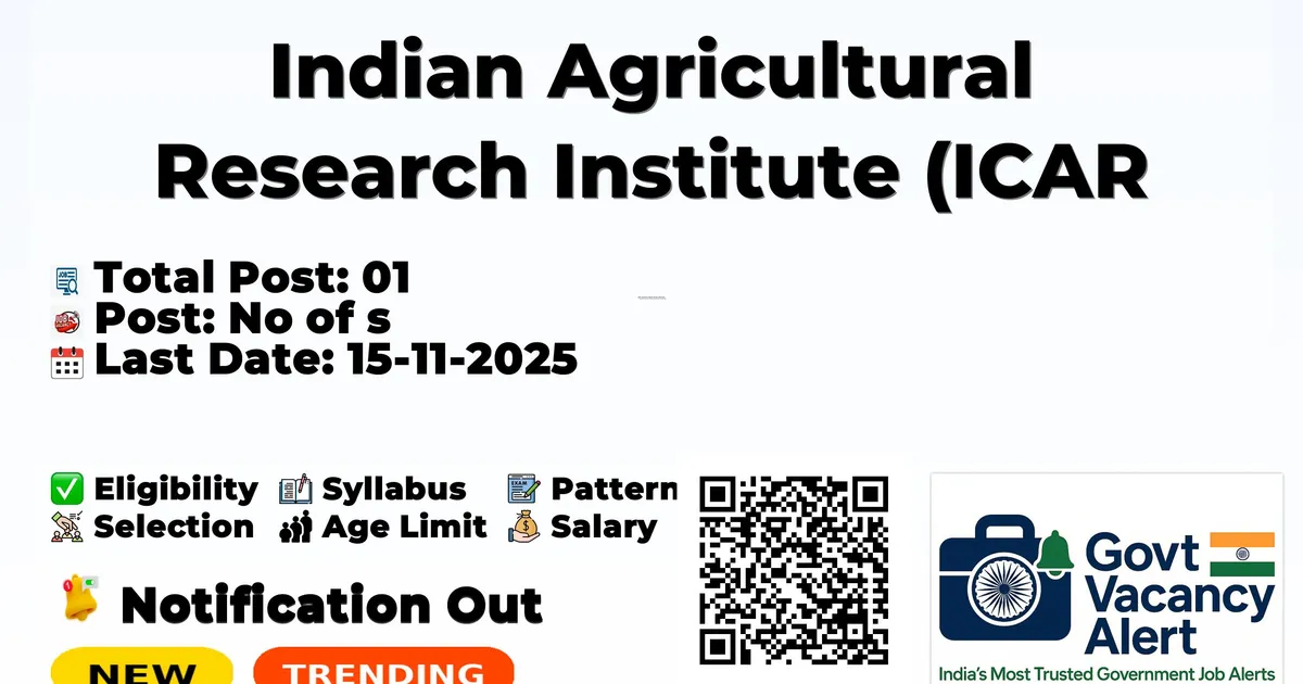Indian Agricultural Research Institute (ICAR IARI) has released an official notification for the recruitment of 01 Senior Research Fellow Posts. Interested and eligible candidates can apply Offline through the official ICAR IARI website. The last date to submit the application form is 15-11-2025. In this article, you’ll find the ICAR IARI Senior Research Fellow Posts recruitment details, including eligibility criteria, age limit, salary structure, selection process, application steps, and direct links to the official notification and Offline application form. Join Our Arattai Channel: Join Here Advertisement Company Name Indian Agricultural Research Institute (ICAR IARI) Post Name Senior Research Fellow No of Posts 01 Pay Matrix Rs.37,000 - 42,000 Qualification Masters Degree Age Limit 35 years Start Date for Apply 31-10-2025 Last Date for Apply 15-11-2025 Official Website iari.res.in Post Name No of Posts Senior Research Fellow (SRF) 01 Master degree in Agriculture/Horticulture specialized in (Floriculture & Landscaping/ Floriculture & Landscape Architecture) with 4 years / 5 years of Bachelor's Degree in Agriculture. Maximum Age limit: 35 Years Age relaxation is applicable as per rules. Starting Date for Apply: 31-10-2025 Last Date for Apply: 15-11-2025 Eligible candidates should mail their complete CV as per the attached format (Annexure-l) giving full details of academic records and experience along with self-attested photocopy(s) of the required/supporting documents in a single PDF file through email to [email protected] on or before 15.12.2025. Eligible candidates must appear physically in the walk-in-interview on 22nd December, 2025 at 10.00 AМ onwards in Conference Hall (First Floor), Division of Floriculture and Landscaping, IARI, New Delhi-110012. Official Notification PDF: Click here Official Website: Click here Join Arattai Channel: Click Here Join Telegram Channel: Click Here Join WhatsApp Channel: Click Here Download Mobile App: Click Here Jobs In Delhi Alwar Delhi Bahadurgarh Ballabgarh Bhiwadi Bhiwani Delhi Faridabad Delhi Ghaziabad Delhi Gurgaon Delhi Kundli CharkhiDadri Loni Manesar New Delhi Noida Delhi Sonepat Delhi Also Read SEBI Recruitment 2025 - Officer Grade A (Assistant Manager) Vacancies - Rs 62500 to 126100 Salary - Apply Now Intelligence Bureau ACIO II Tech Recruitment 2025 - 200+ Vacancies Across India - 44900-142400 Salary - Apply Now RRB Recruitment 2025 - 2500+ JE (Junior Engineer) Vacancies - 35400 Monthly Salary - Apply Now Jobs By Education 10TH Jobs› 8TH Jobs› 12TH Jobs› Diploma Jobs› ITI Jobs› B.Tech/B.E Jobs› B.com Jobs› Any Graduate Jobs› Any Post Graduate Jobs› New Updates RRB NTPC 5,810 Online Form 2025 Territorial Army 1529 Soldier Offline Form 2025 SEBI Officer Grade A Online Form 2025 RRB 2569 JE (Junior Engineer) Online Form 2025 Intelligence Bureau (IB) ACIO II Tech Online Form 2025 RRB NTPC 8850 Online Form 2025-26 Bihar CSBC 4128 Constable Online Form 2025 RPF Constable Result 2025 INI CET 2025 Admit Card Out Today View All Territorial Army 1529 Soldier Offline Form 2025 RRB 2569 JE (Junior Engineer) Online Form 2025 RRB NTPC 12TH Level Online Form 2025 3058 Post BRO 542 MSW, Vehicle Mechanic Offline Form 2025 RITES 600 Senior Technical Assistant Online Form 2025 ISRO SDSC SHAR Various Vacancy Online Form 2025 SECL 543 Assistant Foreman Online Form 2025 ONGC 2623 Apprentices Online Form 2025 Delhi DDA Recruitment 2025 Online Form Out For 1732 Post 1. What is the starting date to apply for ICAR IARI Senior Research Fellow 2025? Ans: Starting Date to apply is 31-10-2025. 2. What is the last apply date for ICAR IARI Senior Research Fellow 2025? Ans: Last apply date is 15-11-2025. 3. What is the Eligibility to apply for ICAR IARI Senior Research Fellow 2025? Ans: Masters Degree 4. What is the Maximum Age Limit to apply for ICAR IARI Senior Research Fellow 2025? Ans: 35 Years 5. How many vacancies are being recruited by ICAR IARI Senior Research Fellow 2025? Ans: Total 01 Vacancies.