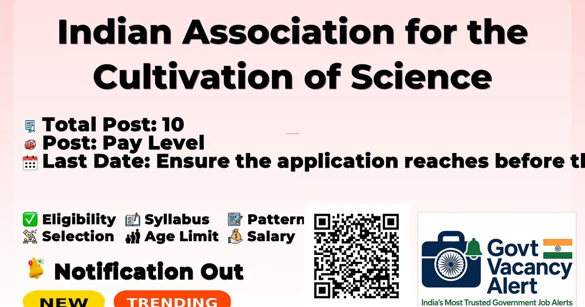 Indian Association for the Cultivation of Science (IACS) Assistant & MTS Notification 2026 has been released on the official website. A total of 10 vacancies have been announced through the IACS Recruitment 2026. FreeJobAlert - Your Personal Govt Job Finder 10M+Users 100+Jobs/day FreeAlways ⚡ Get Custom Govt Job Alerts - Alerts by Qualification, State and Interest. Set Free Alerts ● Free · No spam · Unsubscribe anytime · freejobalert.com Candidates who have a Bachelor’s Degree or have passed Matriculation are eligible to apply for these Assistant and MTS vacancies. The application process for IACS Recruitment 2026 is being conducted in offline mode, and the last date to submit the application is 19 April 2026. Candidates can download the official notification PDF and apply through the direct links provided below in this article. Advertisement Company Name Indian Association for the Cultivation of Science (IACS) Post Name Assistant & MTS No of Posts 10 Advt No IACS/ADVT/P/354 Salary Assistant: Rs. 44,900/-. MTS: Rs. 18,000/-. Qualification Bachelor's Degree for Assistant, Matriculation for MTS. Age Limit Assistant: Max 30 years. MTS: 18-25 years. Last Date 19 April 2026 Apply Mode Offline Job Type Regular Candidates who are interested in applying for the IACS Recruitment 2026 should first download and carefully read the official notification PDF. The notification contains complete details about vacancy distribution, eligibility criteria, age limit, stipend/salary, selection process, important dates, and application instructions. Reading the official document is important to ensure that you meet all requirements before submitting the application form. Download IACS Job 2026 Notification PDF Post Name Total Posts Assistant 5 MTS (General) 5 Total 10 Assistant: Bachelor's Degree with five years administrative experience, having good knowledge of English of the employees and assist his/her superiors in the relevant field of work or act as per requirement of the Institute. MTS (General): Matriculation Examination or equivalent from a recognized board. Category Fee SC/ST and Female Candidates Rs. 500/- All other categories Rs. 1000/- Assistant: Maximum age limit is 30 years. Age relaxation for departmental candidates is up to 40 years. MTS (General): Minimum age is 18 years and maximum age is 25 years. Age relaxation for departmental candidates is up to 40 years. Post Name Pay Level Basic Pay Assistant Level 7 in 7CPC Rs.44,900/- MTS (General) Level 1 in 7CPC Rs.18,000/- Event Date Closing date for receipt of application 19 April 2026 Written Test Skill Test Computer Based Test Candidates who wish to apply for IACS Various Posts Recruitment 2026 through offline mode should follow the steps below. Read the official notification carefully before applying. Download the application form from the official website: . Fill the application form carefully with correct information. Attach self-attested copies of required documents such as photograph, signature, ID proof, and certificates. Check all details carefully before submission. Send the completed application form to the address mentioned in the notification through Speed Post / Registered Post or as instructed. Ensure the application reaches before the last date: 19-04-2026. Keep a photocopy of the submitted application form for future reference. Link Description Link Official Notification PDF Click here Official Website Click here FreeJobAlert - Your Personal Govt Job Finder 10M+Users 100+Jobs/day FreeAlways ⚡ Get Custom Govt Job Alerts - Alerts by Qualification, State and Interest. Set Free Alerts ● Free · No spam · Unsubscribe anytime · freejobalert.com
