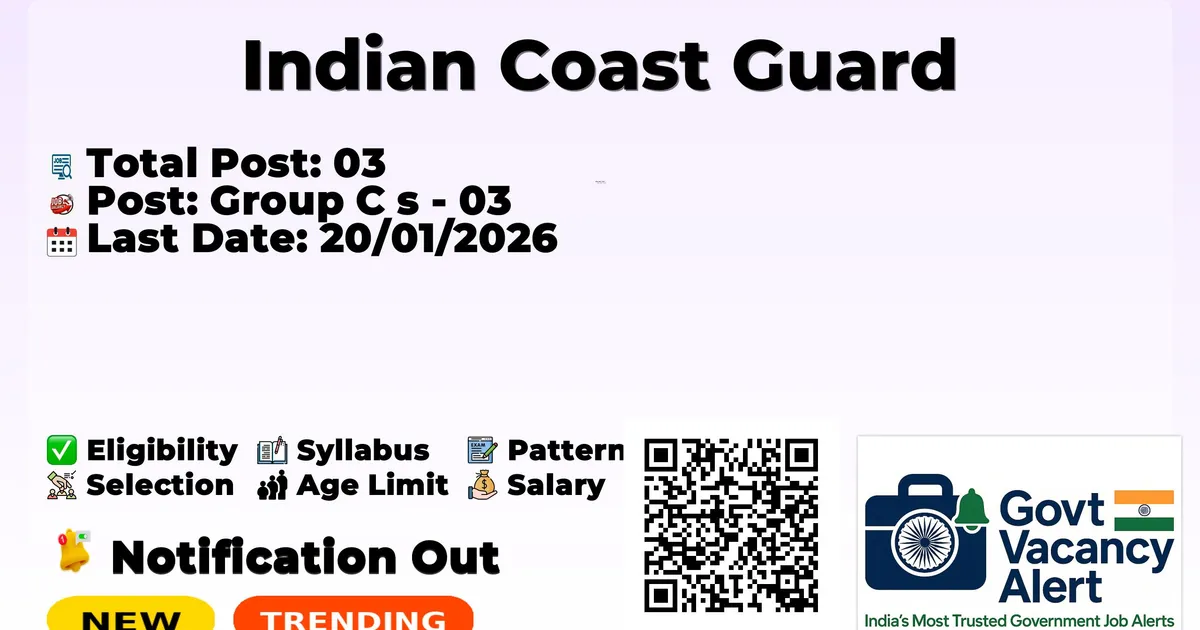 Indian Coast Guard has invited offline applications from eligible Indian citizens for direct recruitment to 03 Group ‘C’ Civilian vacancies at Delhi NCR. The posts are Mechanical Fitter (Skilled), MTS (Peon) and MTS (Sweeper). Interested candidates can apply in the prescribed format latest by 20 January 2026. No application fee is charged from any category.