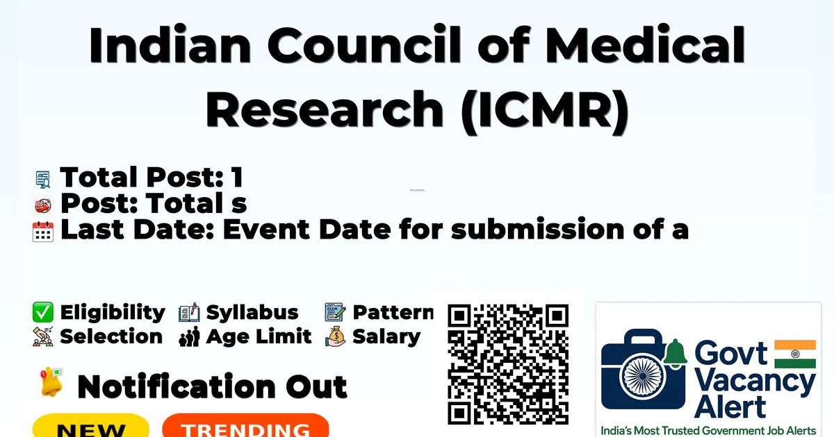 Indian Council of Medical Research (ICMR) Recruitment 2026: Indian Council of Medical Research has released the official notification for 1 Consultant (Scientific – Non-Medical) posts, inviting applications from eligible candidates. This recruitment provides an excellent opportunity for candidates seeking research jobs.