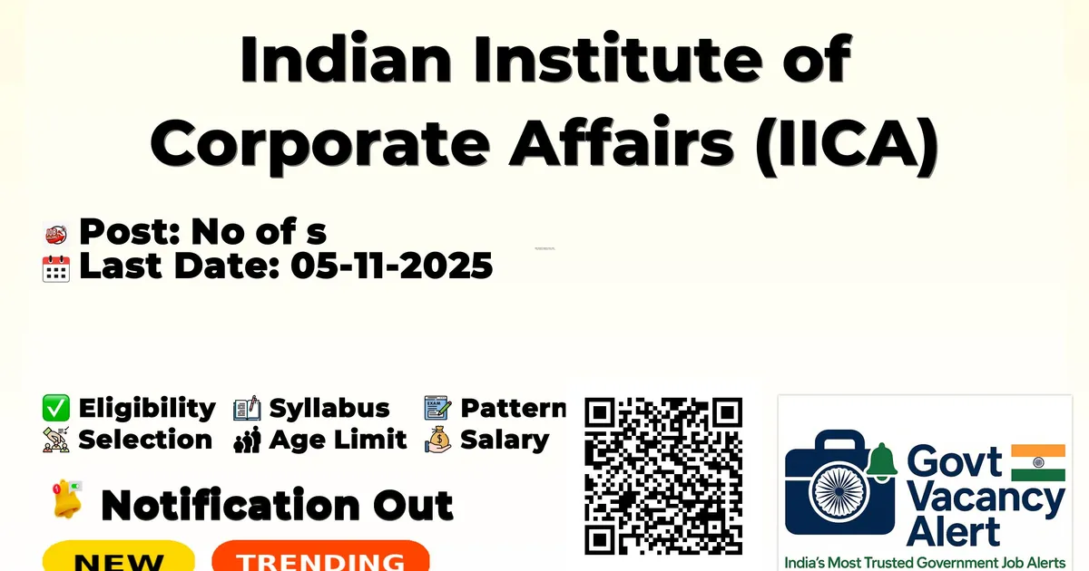 Indian Institute of Corporate Affairs (IICA) has released an official notification for the recruitment of Senior Consultant Posts. Interested and eligible candidates can apply Offline through the official IICA website. The last date to submit the application form is 05-11-2025. In this article, you’ll find the IICA Senior Consultant Posts recruitment details, including eligibility criteria, age limit, salary structure, selection process, application steps, and direct links to the official notification and Offline application form.