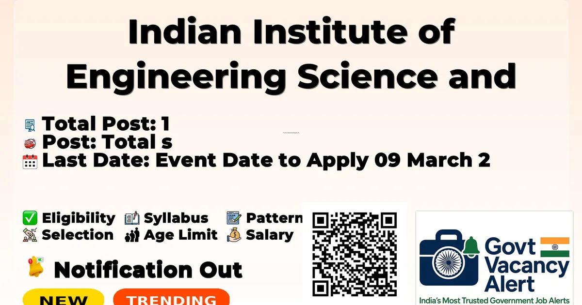 Indian Institute of Engineering Science and Technology Shibpur (IIEST) Recruitment 2026: Indian Institute of Engineering Science and Technology Shibpur has released the official notification for 1 Junior Research Fellow posts, inviting applications from eligible candidates in West Bengal. This recruitment provides an excellent opportunity for candidates seeking stable and well-paid research jobs.