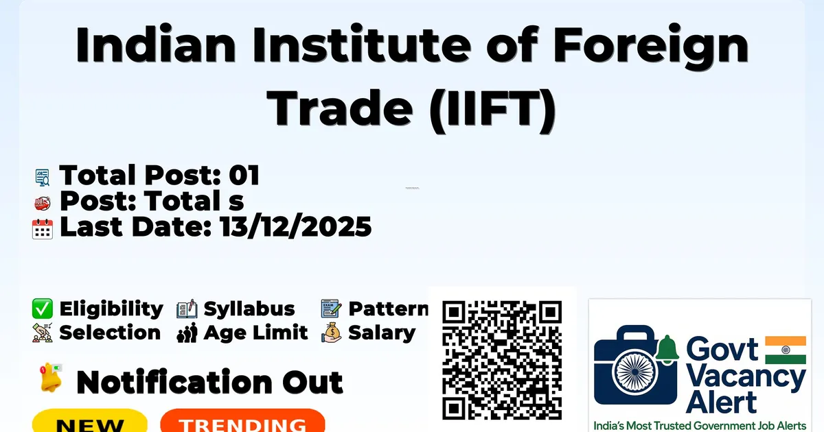 Indian Institute of Foreign Trade (IIFT) has released an official notification for the recruitment of 01 Case Study Manager Posts. Interested and eligible candidates can apply Online through the official IIFT website. The last date to submit the application form is 13-12-2025. In this article, you’ll find the IIFT Case Study Manager Posts recruitment details, including eligibility criteria, age limit, salary structure, selection process, application steps, and direct links to the official notification and Online application form.
