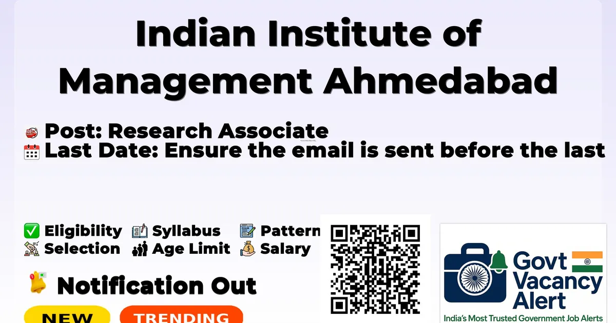Indian Institute of Management Ahmedabad (IIM Ahmedabad) has officially released a notification for the recruitment of Research Associate Posts. This recruitment drive offers a great opportunity for candidates looking for government jobs. Interested and eligible candidates can apply by sending their resume and documents to the official email address.