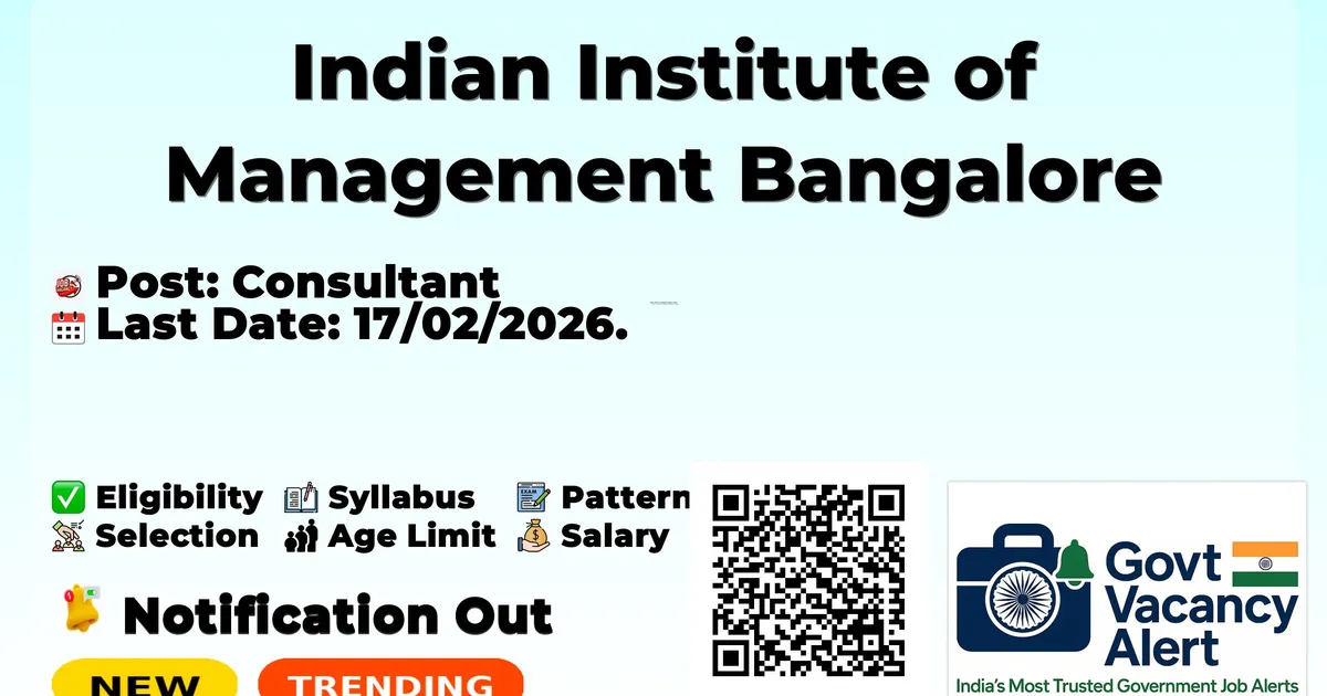 Indian Institute of Management Bangalore (IIM Bangalore) has released an official notification for the recruitment Consultant Posts. Interested and eligible candidates can apply Online through the official IIM Bangalore website. The last date to submit the application form is 17-02-2026. In this article, you’ll find the IIM Bangalore Consultant Posts recruitment details, including eligibility criteria, age limit, salary structure, selection process, application steps, and direct links to the official notification and Online application form.