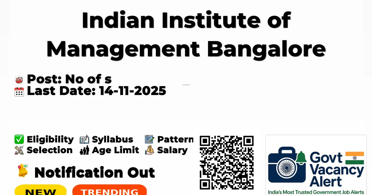Indian Institute of Management Bangalore (IIMB) has released an official notification for the recruitment of Post Doctoral Fellow Posts. Interested and eligible candidates can apply Online through the official IIMB website. The last date to submit the application form is 14-11-2025. In this article, you’ll find the IIMB Post Doctoral Fellow Posts recruitment details, including eligibility criteria, age limit, salary structure, selection process, application steps, and direct links to the official notification and Online application form.