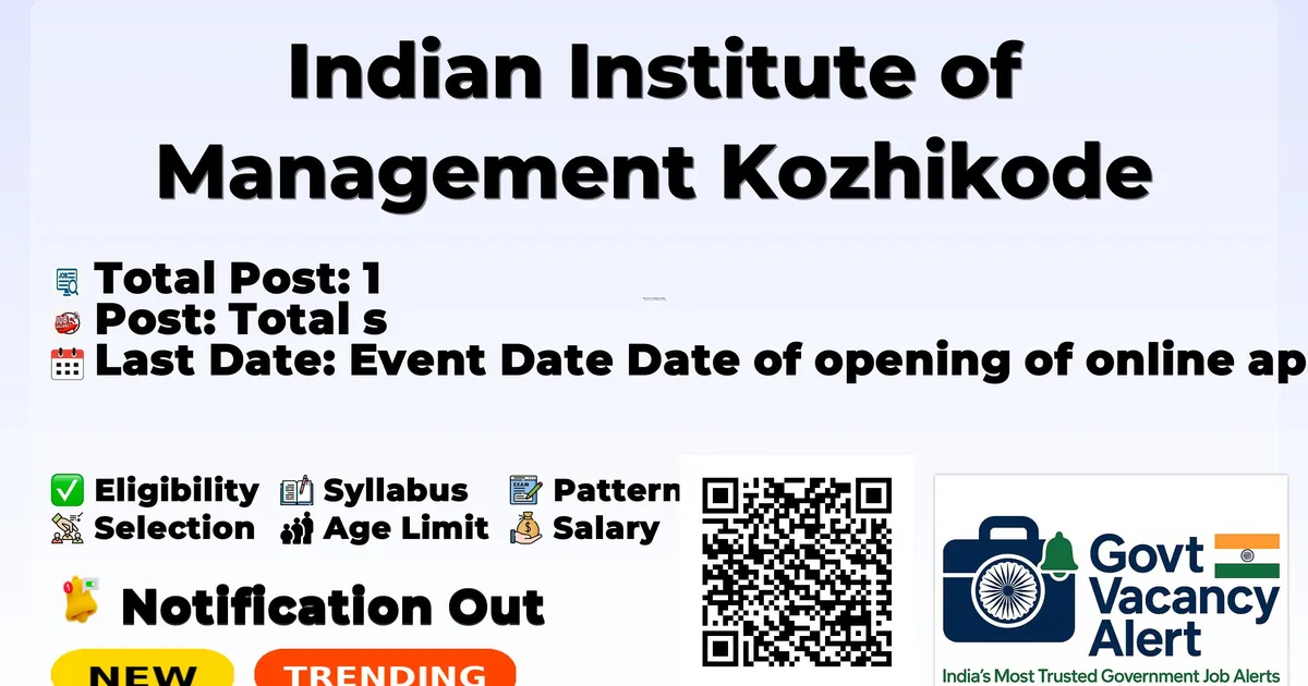 Indian Institute of Management Kozhikode (IIM Kozhikode) has officially released a notification for the recruitment of 1 Accounting and Finance Manager (Post Code: AFM) Posts. This recruitment drive offers a great opportunity for candidates looking for government jobs. Interested and eligible candidates can apply online through the official website.