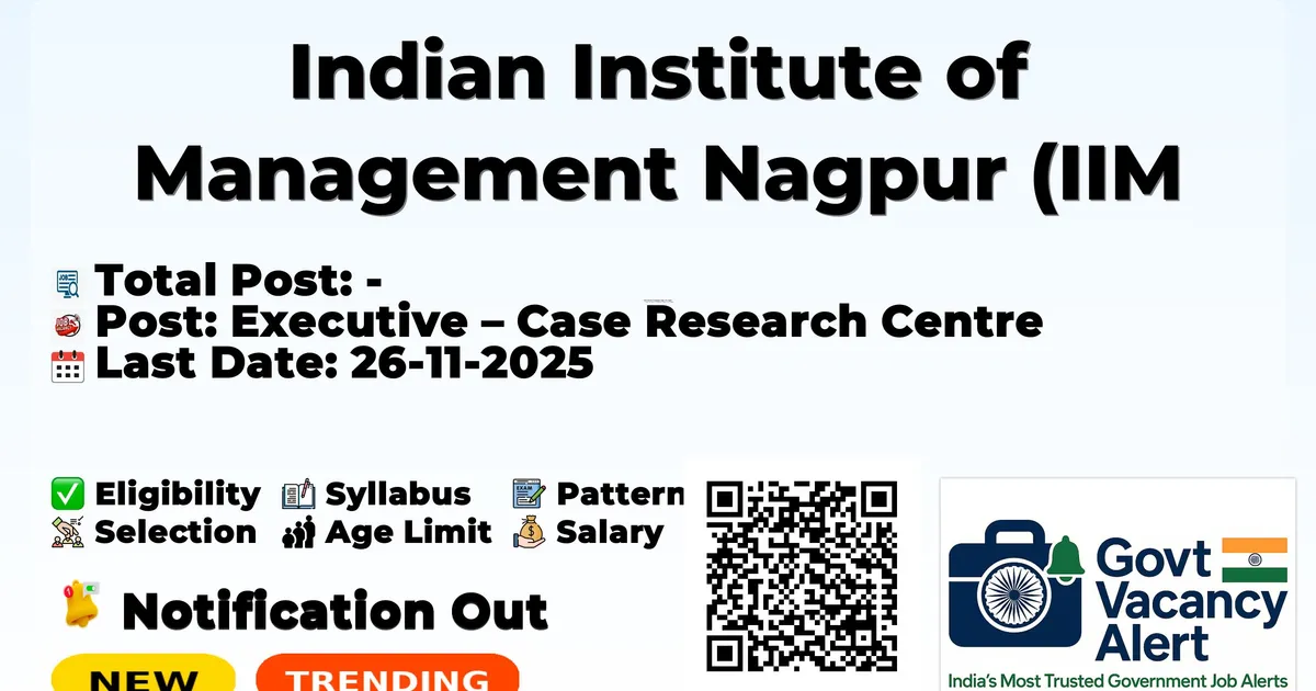 Company Name Indian Institute of Management Nagpur (IIM Nagpur) Post Name Executive – Case Research Centre No of Posts - Qualification B.B.A Age Limit 35 years Last Date for Apply Online 26-11-2025 Official Website iimnagpur.ac.in