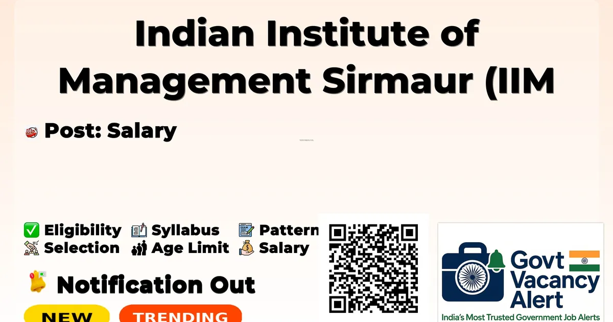 Indian Institute of Management Sirmaur (IIM Sirmaur) has officially released a notification for the recruitment of Faculty Positions Posts. This recruitment drive offers a great opportunity for candidates looking for education jobs. Interested and eligible candidates can apply online through the official website.The last date to apply online is 30-04-2026, so applicants are advised to submit their forms well before the deadline to avoid last-minute issues. Advertisement Company Name Indian Institute of Management Sirmaur (IIM Sirmaur) Post Name Faculty Positions : Professor, Associate Professor, Assistant Professor Advt No 01/2026 Salary Assistant Professor (Grade-1): Rs. 101500 per month. Associate Professor: Rs. 139600 per month. Professor: Rs. 159100 per month. Qualification FPM or Ph.D. or equivalent Age Limit Assistant Professor (Grade-1) & Assistant Professor Grade-II: Preferably up to 35 years. Last Date 30-04-2026 Apply Mode Online Job Type Contract Trending Govt Jobs RRB 22000 Group D Online form 2026 IAF Agniveer New Recruitment 2026 DSSSB 911 AE, JE & More Online Form 2026 MCL 677 Various Vacancies Online Form 2026 MMRDA 235 AE, JE and More Posts Online Form 2026 Candidates who are interested in applying for the IIM Sirmaur Recruitment 2026 should first download and carefully read the official notification PDF. The notification contains complete details about vacancy distribution, eligibility criteria, age limit, stipend/salary, selection process, important dates, and application instructions. Reading the official document is important to ensure that you meet all requirements before submitting the application form. Download IIM Sirmaur Job 2026 Notification PDF Assistant Professor (Grade-1): FPM or Ph.D. or equivalent in the discipline, with a first class or equivalent at the preceding degree, with a very good academic record throughout. At least 3 years industrial/research/teaching experience, excluding, however, the experience gained while pursuing FPM/Ph.D. Assistant Professor Grade-II (On Contract): A Ph.D. degree or equivalent in the discipline, with a first class or equivalent at the preceding degree with a very good academic record throughout. Associate Professor: FPM or Ph.D. or equivalent in the discipline, with a first class or equivalent at the preceding degree, with a very good academic record throughout. A minimum of 6 years Teaching/Industry/Research experience of which at least 3 years, excluding, however, the experience gained while pursuing FPM/Ph.D., should be at the level of Assistant Professor (Grade 1). Successful track record of teaching, training, research and publications in reputed peer-reviewed journals (preferably, listed in ABDC ranking). Professor: FPM or Ph.D. or equivalent in the discipline, with a first class or equivalent at the preceding degree, with a very good academic record throughout. A minimum of 10 years' relevant experience of which at least 4 years should be at the level of Associate Professor in IITs/IISc Bangalore/IIMs/NITIE_Mumbai/IISERs (excluding, however, the experience gained while pursuing FPM/Ph.D). Successful track record of teaching, training, research, and publications in reputed peer-reviewed journals (preferably, journals in ABDC ranking). Assistant Professor (Grade-1): Preferably up to 35 years. Assistant Professor Grade-II (On Contract): Preferably up to 35 years. Post Name Salary Assistant Professor (Grade-1) Pay Level-12 (Rs. 101500 per month) + usual allowances as per Gol norms Associate Professor Pay Level-13 A2 (Rs. 139600 per month) + usual allowances as per Gol norms Professor Pay Level-14A (Rs. 159100 per month) + usual allowances as per Gol norms Event Date Application Deadline 30 April 2026 Screening based on qualifications and experience Interview Candidates who meet the eligibility criteria can apply online for the IIM Sirmaur Various Posts Recruitment 2026. Applications must be submitted online on or before 30-04-2026. To apply directly, use the Apply Online link provided in the Important Links section. Alternatively, candidates may visit the official website of IIM Sirmaur to complete the application. Fill out the application form carefully with correct personal, educational, and contact details. Upload required documents such as photograph, signature, and certificates in the prescribed format. Pay the application fee online, if applicable. Review all details carefully before submitting the form. Take a printout or save a copy of the submitted application for future reference. IIM Sirmaur Recruitment 2026 - Important Links Official Notification PDF Click here Official Website Click here