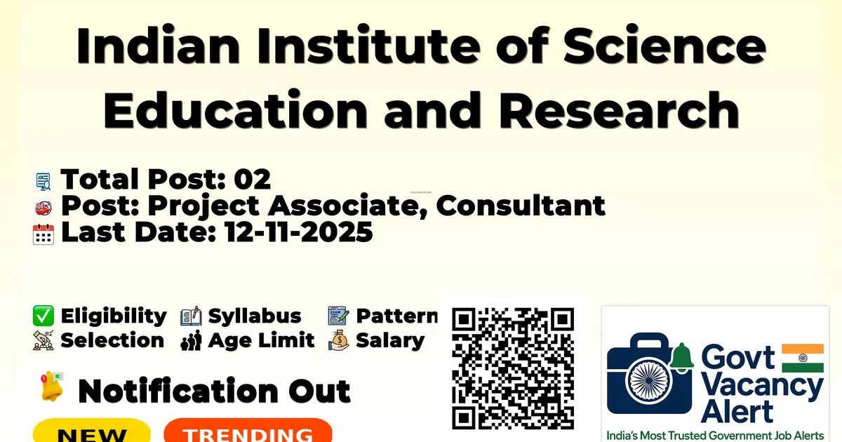Indian Institute of Science Education and Research (IISER Pune) has released an official notification for the recruitment of 02 Project Associate, Consultant Posts. Interested and eligible candidates can apply Offline through the official IISER Pune website. The last date to submit the application form is 12-11-2025. In this article, you’ll find the IISER Pune Project Associate, Consultant Posts recruitment details, including eligibility criteria, age limit, salary structure, selection process, application steps, and direct links to the official notification and Offline application form.