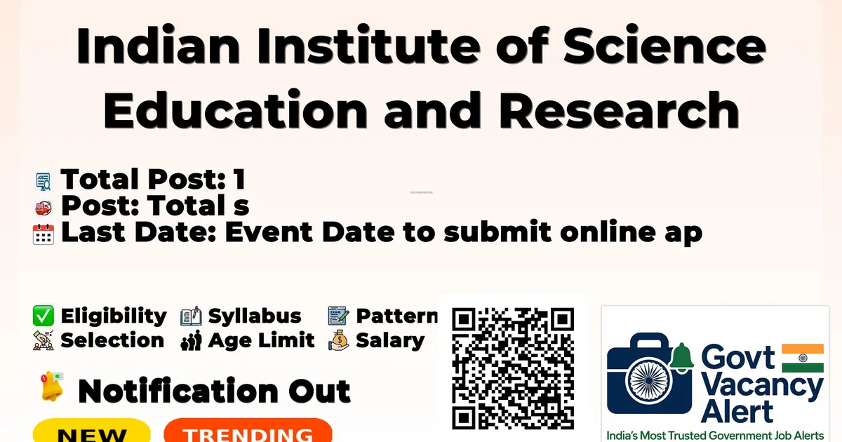 Indian Institute of Science Education and Research Pune (IISER Pune) has officially released a notification for the recruitment of 1 Medical Officer – Female Posts. This recruitment drive offers a great opportunity for candidates looking for government jobs. Interested and eligible candidates can apply online through the official website.
