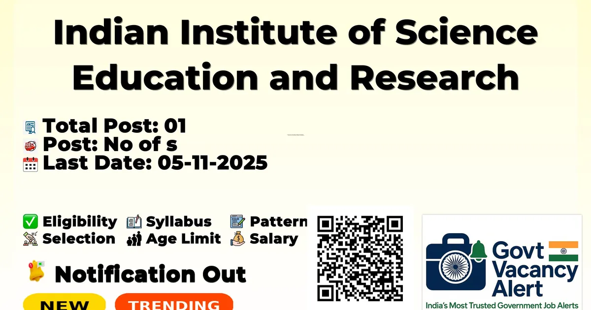 Indian Institute of Science Education and Research Thiruvananthapuram (IISER Thiruvananthapuram) has released an official notification for the recruitment of 01 Project Scientist II Posts. Interested and eligible candidates can apply Online through the official IISER Thiruvananthapuram website. The last date to submit the application form is 05-11-2025. In this article, you’ll find the IISER Thiruvananthapuram Project Scientist II Posts recruitment details, including eligibility criteria, age limit, salary structure, selection process, application steps, and direct links to the official notification and Online application form.