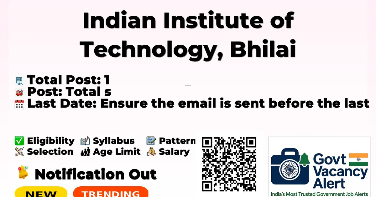 Indian Institute of Technology, Bhilai (IIT Bhilai) Recruitment 2026: Indian Institute of Technology, Bhilai has released the official notification for 1 Project Associate posts, inviting applications from eligible candidates. This recruitment provides an excellent opportunity for candidates seeking research jobs.