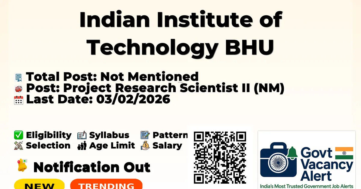 Indian Institute of Technology BHU (IIT BHU) has released an official notification for the recruitment Project Research Scientist II Posts. Interested and eligible candidates can apply Offline through the official IIT BHU website. The last date to submit the application form is 03-02-2026. In this article, you’ll find the IIT BHU Project Research Scientist II Posts recruitment details, including eligibility criteria, age limit, salary structure, selection process, application steps, and direct links to the official notification and Offline application form.