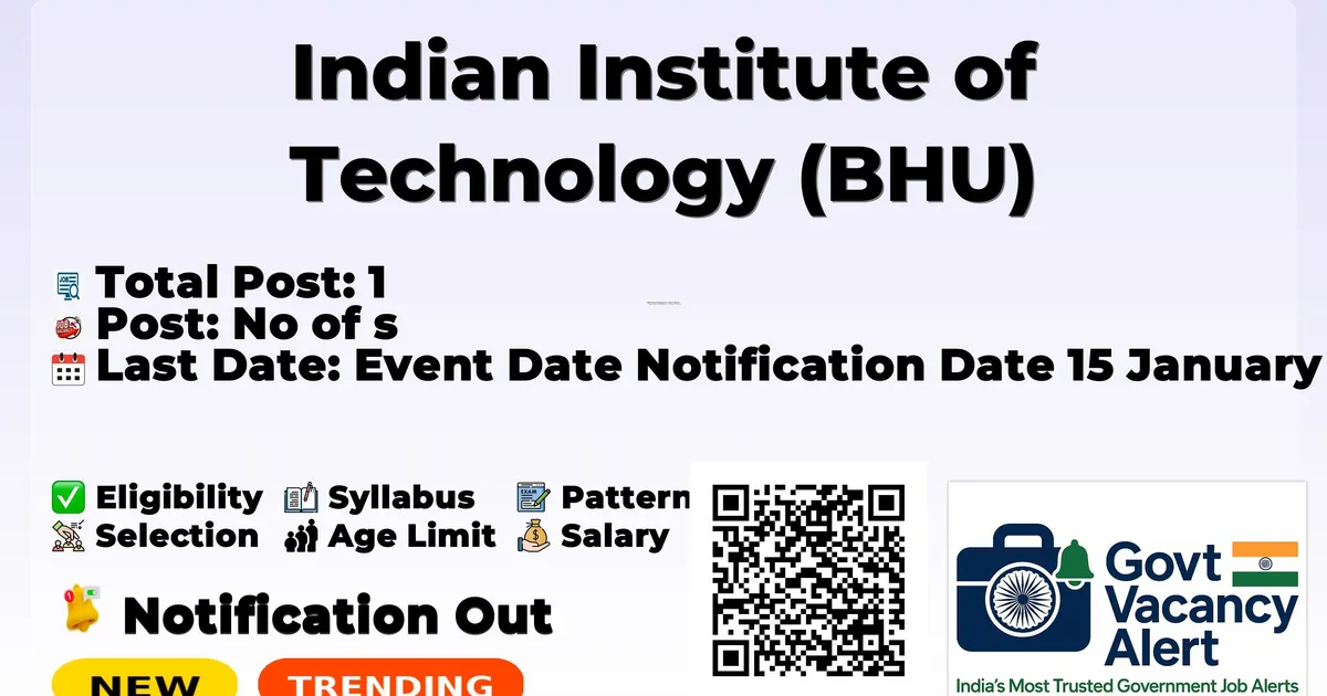 Indian Institute of Technology BHU (IIT BHU) has released an official notification for the recruitment of 01 Junior Research Fellow Posts. Interested and eligible candidates can apply Online through the official IIT BHU website. The last date to submit the application form is 04-02-2026. In this article, you’ll find the IIT BHU Junior Research Fellow Posts recruitment details, including eligibility criteria, age limit, salary structure, selection process, application steps, and direct links to the official notification and Online application form.