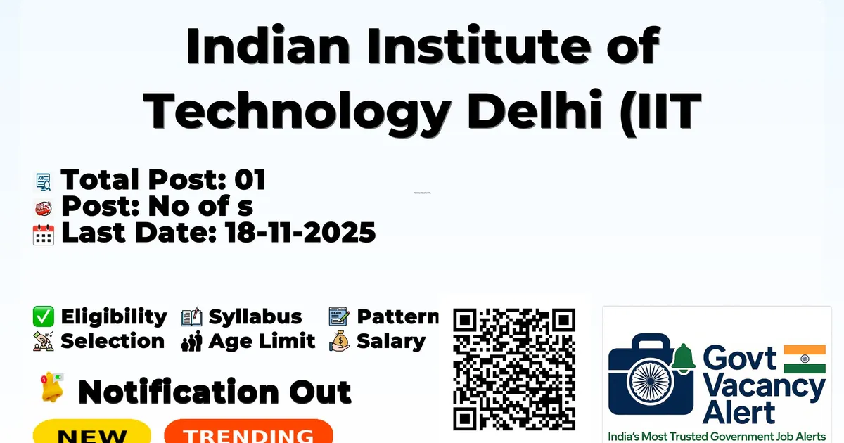 Indian Institute of Technology Delhi (IIT Delhi) has released an official notification for the recruitment of 01 Project Attendant Posts. Interested and eligible candidates can apply Offline through the official IIT Delhi website. The last date to submit the application form is 18-11-2025. In this article, you’ll find the IIT Delhi Project Attendant Posts recruitment details, including eligibility criteria, age limit, salary structure, selection process, application steps, and direct links to the official notification and Offline application form.