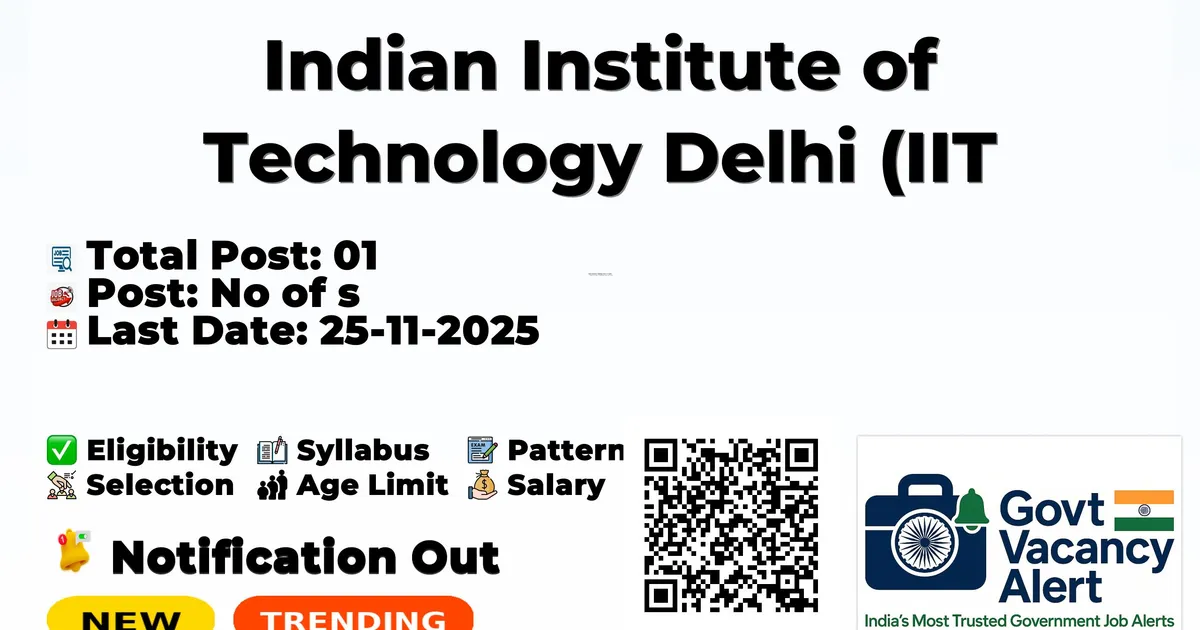 Indian Institute of Technology Delhi (IIT Delhi) has released an official notification for the recruitment of 01 Project Assistant Posts. Interested and eligible candidates can apply Online through the official IIT Delhi website. The last date to submit the application form is 25-11-2025. In this article, you’ll find the IIT Delhi Project Assistant Posts recruitment details, including eligibility criteria, age limit, salary structure, selection process, application steps, and direct links to the official notification and Online application form. Join Arattai Channel Trending Govt Jobs IAF AFCAT 01/2026 Online Form 2025 NABARD Officers Grade A Online Form 2025 RRB NTPC 5,810 Online Form 2025 Intelligence Bureau (IB) ACIO II Tech Online Form 2025 Territorial Army 1529 Soldier Offline Form 2025 Advertisement Company Name Indian Institute of Technology Delhi (IIT Delhi) Post Name Project Assistant No of Posts 01 Salary Rs.39,420/- Qualification B.Sc Start Date for Apply Online 07-11-2025 Last Date for Apply Online 25-11-2025 Official Website iitd.ac.in Post Name No of Posts Project Assistant (X Ray Technician) 01 B.Sc. (Hons.) in Radiography from a reputed institute and more than Two years of radiography facility handling experience at premier hospitals with an operating role of radiographer/ radiodiagnosis/radiothercpy/medical imaging technology equipment in an estab ished center. Starting Date for Apply Online: 07-11-2025 Last Date for Apply Online: 25-11-2025 The last date for submitting the completed applications via the Google Form https://forms.gle/ZccrDmkQMaAQz3Jm9 or https://tinyurl.com/33dx4x4j is 25.11.2025 by 5:00 p.m. Apply Online: Click here Official Notification PDF: Click here Official Website: Click here Join Arattai Channel: Click Here Join Telegram Channel: Click Here Join WhatsApp Channel: Click Here Download Mobile App: Click Here Jobs In Delhi Alwar Delhi Bahadurgarh Ballabgarh Bhiwadi Bhiwani Delhi Faridabad Delhi Ghaziabad Delhi Gurgaon Delhi Kundli CharkhiDadri Loni Manesar New Delhi Noida Delhi Sonepat Delhi Also Read SEBI Recruitment 2025 - Officer Grade A (Assistant Manager) Vacancies - Rs 62500 to 126100 Salary - Apply Now Intelligence Bureau ACIO II Tech Recruitment 2025 - 200+ Vacancies Across India - 44900-142400 Salary - Apply Now RRB Recruitment 2025 - 2500+ JE (Junior Engineer) Vacancies - 35400 Monthly Salary - Apply Now Jobs By Education 10TH Jobs› 8TH Jobs› 12TH Jobs› Diploma Jobs› ITI Jobs› B.Tech/B.E Jobs› B.com Jobs› Any Graduate Jobs› Any Post Graduate Jobs› Territorial Army 1529 Soldier Offline Form 2025 RRB 2569 JE (Junior Engineer) Online Form 2025 ONGC 2623 Apprentices Online Form 2025 BSSC 23175 Inter Level Online Form 2025 RITES 600 Senior Technical Assistant Online Form 2025 BRO 542 MSW, Vehicle Mechanic Offline Form 2025 RRB NTPC 12TH Level Online Form 2025 3058 Post ISRO SDSC SHAR Various Vacancy Online Form 2025 RRB NTPC 8850 Online Form 202526 1. What is the starting date to apply online for IIT Delhi Project Assistant 2025? Ans: Starting Date to apply online is 07-11-2025. 2. What is the last online apply date for IIT Delhi Project Assistant 2025? Ans: Last online apply date is 25-11-2025. 3. What is the Eligibility to apply for IIT Delhi Project Assistant 2025? Ans: B.Sc 4. How many vacancies are being recruited by IIT Delhi Project Assistant 2025? Ans: Total 01 Vacancies.