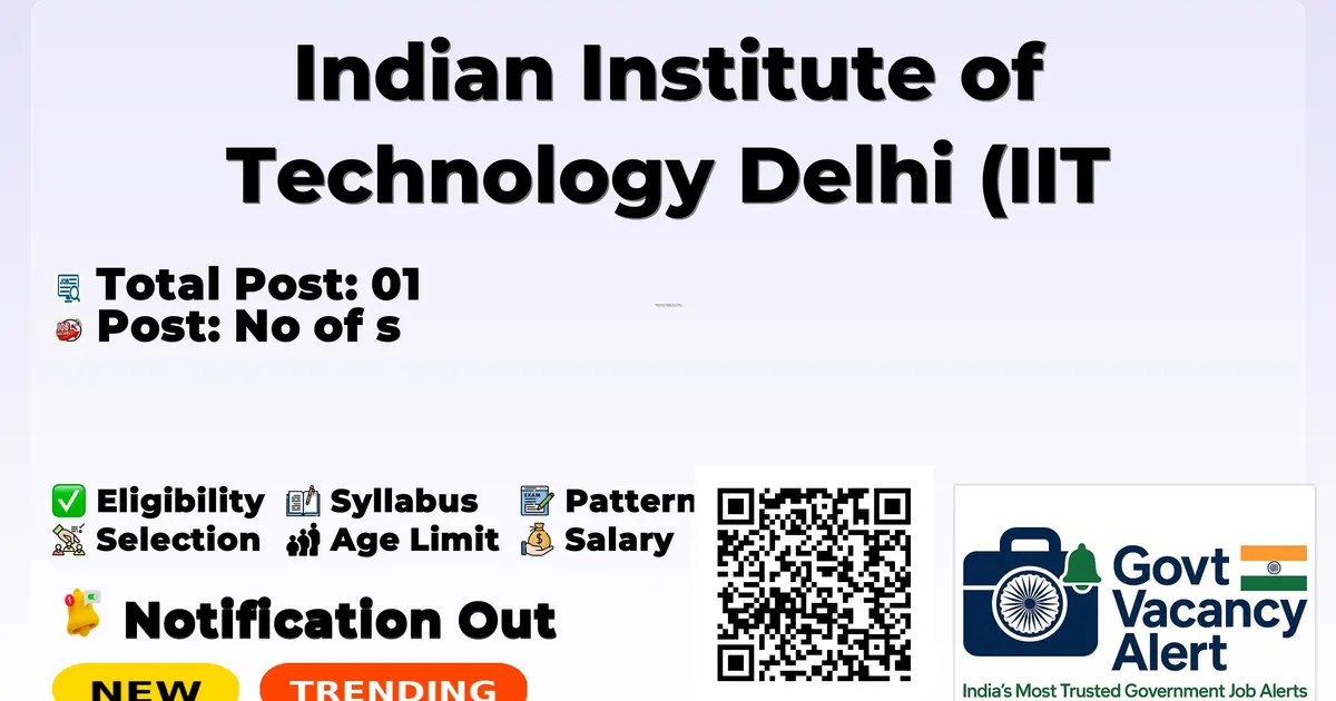 Company Name Indian Institute of Technology Delhi (IIT Delhi) Advt No. IITD/IRD/008/2026 Post Name Project Research Scientist -II No of Posts 01 Salary Rs.67,000/-p.m. plus HRA @ 30% Qualification PhD with experience on development of materials for wound healing with animal handling experience with related publication Official Website https://www.iitd.ac.in/