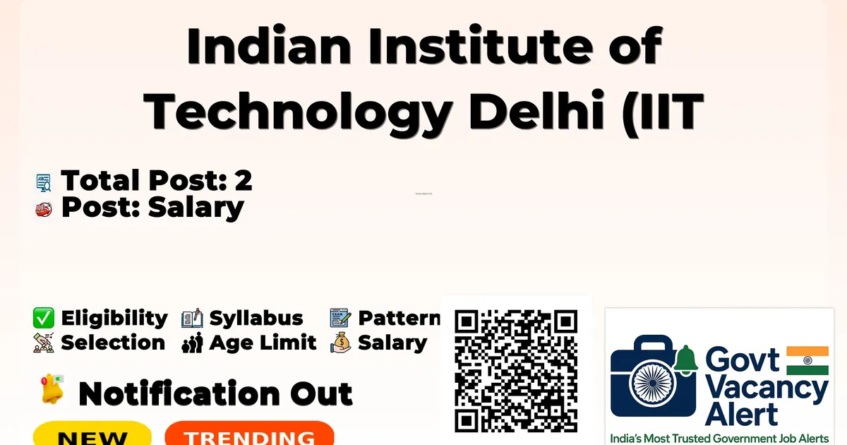 Indian Institute of Technology Delhi (IIT Delhi) has officially announced a Walk-in Interview for the recruitment of 2 Project Consultant and Project Assistant Posts. This walk-in drive offers a great opportunity for candidates looking for research jobs. Candidates with Undergraduate and Postgraduate degrees in social sciences with 5-8 years of professional experience for Project Consultant. Bachelor's and Master's degrees in Social Sciences with at least one year of post-degree experience for Project Assistant. qualification can directly attend the interview on . Candidates are advised to reach the walk-in venue on time with all original documents, self-attested photocopies, and recent passport-size photographs. In this article, you will find complete details about Project Consultant and Project Assistant Walk-in Recruitment 2026, including vacancy details, eligibility criteria, age limit, salary, walk-in schedule, venue address, and important links. Advertisement Company Name Indian Institute of Technology Delhi (IIT Delhi) Post Name Project Consultant and Project Assistant No of Posts 2 Advt No IITD/IRD/055/2026 Salary Rs. 45,000/- to Rs. 1,15,000/- per month Qualification Graduate, Postgraduate Age Limit Please refer to the official notification for age limit details. Last Date Please refer to the official notification for last date details. Walk-in Date 10 March 2026 Apply Mode Walk-in Job Type Project-based Candidates who are interested in applying for the IIT Delhi Recruitment 2026 should first download and carefully read the official notification PDF. The notification contains complete details about vacancy distribution, eligibility criteria, age limit, stipend/salary, selection process, important dates, and application instructions. Reading the official document is important to ensure that you meet all requirements before submitting the application form. Download IIT Delhi Job 2026 Notification PDF Post Name Total Posts Project Consultant 1 Project Assistant (Tech) 1 Total 2 Trending Govt Jobs RRB 22000 Group D Online form 2026 IAF Agniveer New Recruitment 2026 DSSSB 911 AE, JE & More Online Form 2026 MCL 677 Various Vacancies Online Form 2026 MMRDA 235 AE, JE and More Posts Online Form 2026 Project Consultant: Undergraduate and Postgraduate degrees in social sciences. Minimum 5-8 years of professional experience in one or more of the following areas: Research and Teaching, project planning and coordination, and field-based projects. Experience in research, training, and community programs is desirable. Project Assistant (Tech): Bachelor's and Master's degrees in Social Sciences. Minimum one year of post-degree experience in a relevant field. Experience in research, training, and community programs is desirable. Category Fee All No application fee is mentioned in the official notification. Please refer to the official notification for specific age limit details for each post. Age relaxation for Retired/Superannuated Government Employees: Salary will be fixed as per prevailing IRD norms. Post Name Salary Project Consultant Rs. 1,15,000/- per month (consolidated) Project Assistant (Tech) Rs. 45,000/- per month (consolidated) Event Date Walk-in Interview 10 March 2026 Walk-in Interview Candidates who wish to attend the walk-in interview for IIT Delhi Various Posts Recruitment 2026 should follow the steps below. Read the official notification carefully before attending the interview. Candidates must report at the venue as per the reporting time mentioned in the notification. Carry all original documents along with one set of self-attested photocopies such as ID proof, educational certificates, experience certificates (if required), and category certificate (if applicable). Bring the duly filled application form if required in the notification. Verify eligibility criteria before attending the interview. Candidates are advised to reach the venue well in advance to complete registration formalities. Keep extra passport-size photographs for submission if required. Link Description Link Official Notification PDF Click here Official Website Click here