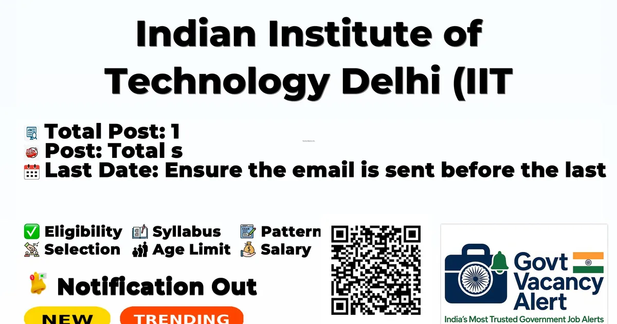 Indian Institute of Technology Delhi (IIT Delhi) has released an official notification for the recruitment of 1 Project Assistant Posts. Interested and eligible candidates can apply by sending their application via Email. The last date to send the application email is 20-03-2026. Advertisement Company Name Indian Institute of Technology Delhi (IIT Delhi) Post Name Project Assistant No of Posts 1 Advt No IITD/IRD/060/2026 Salary Rs. 20,000/- Per Month Qualification Diploma (3 years duration) or B.Tech/B.E Last Date 20-03-2026 Apply Mode Email Job Type Contract Candidates should download and read the IIT Delhi Jobs 2026 notification PDF carefully to check vacancy details, eligibility, age limit, and application instructions. The notification also includes important dates and selection process details. The direct download link is available in the Important Links section below. Download IIT Delhi Project Assistant Job 2026 Notification PDF Post Name Total Posts Project Assistant (Tech.) 1 Total 1 Trending Govt Jobs RBI 650 Assistant Online Form 2026 IDBI Bank Junior Assistant Manager Online Form 2026 Indian Army Agniveer Recruitment Rally Notification 2026 AIIMS NORCET 10 Online Form 2026 HPCL 731 Engineers, JEA and More Online Form 2026 Diploma (3 years duration) or Graduate Degree in Mechanical Engineering/Aerospace Engineering/Civil Engineering. 2 years of relevant work experience. Proficiency in managing lab equipment inventories. Category Fee General/OBC Nil SC/ST Nil Please refer to the official notification for age limit details. Rs. 20,000/- p.m. plus 27% HRA Event Date Advertisement Date 06 March 2026 Last Date for Application 20 March 2026 Short-listing of eligible candidates Online Interview Candidates who wish to apply for IIT Delhi Project Assistant Recruitment 2026 via email should follow the steps below. Read the official notification carefully before applying. Prepare your application with complete bio-data including personal details, educational qualifications, and experience. Attach self-attested copies of all required documents such as educational certificates, experience certificates, ID proof, and recent passport-size photographs. Clearly mention the post applied for in the subject line of the email. Send the complete application to the official email address mentioned in the notification. Ensure the email is sent before the last date: 20-03-2026. Keep a copy of the sent email for future reference. Link Description Link Official Notification PDF Click here Official Website Click here