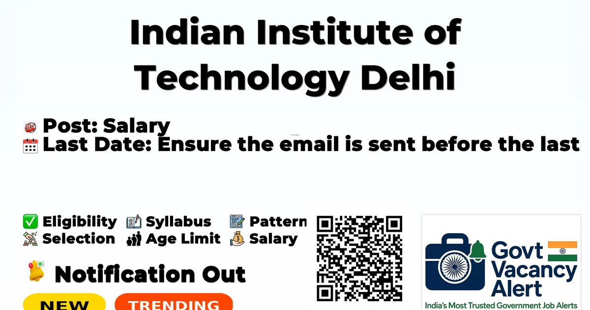 The application process for IIT Delhi Recruitment 2026 has started on 12-02-2026 and will remain open until 26-02-2026. Applications must be submitted via email mode as per the official notification.Candidates can download the official notification PDF and apply through the direct links provided below in this article.