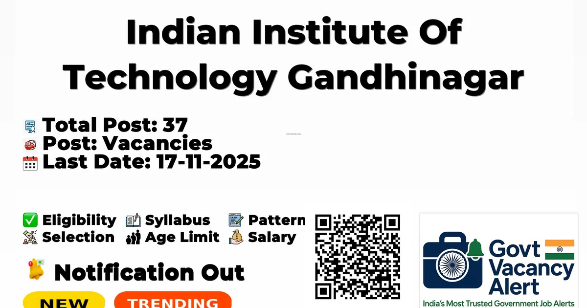 Indian Institute Of Technology Gandhinagar (IIT Gandhinagar) has released an official notification for the recruitment of 37 Deputy Librarian, Assistant Registrar and Other Posts. Interested and eligible candidates can apply Online through the official IIT Gandhinagar website. The last date to submit the application form is 17-11-2025. In this article, you’ll find the IIT Gandhinagar Deputy Librarian, Assistant Registrar and Other Posts recruitment details, including eligibility criteria, age limit, salary structure, selection process, application steps, and direct links to the official notification and Online application form.