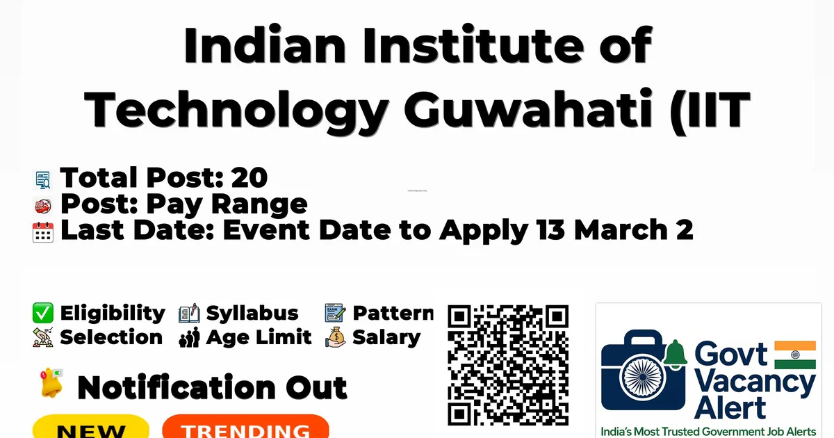 Company Name Indian Institute of Technology Guwahati (IIT Guwahati) Post Name Project Staff No of Posts 20 Advt No IITG/II&SI/Project Staff Rectt-2026/99 Salary Rs. 25,000/- - Rs. 75,000/- Per Month Qualification Bachelor's degree, Master's degree, PhD, B.Com, Higher Secondary/Intermediate Age Limit Last Date 13-03-2026 Apply Mode Online Job Type Contract